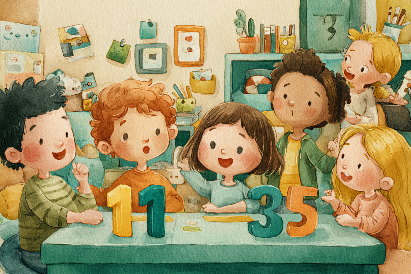 - الألعاب التفاعلية: استخدم كروت الأرقام، أو العد على الأصابع، أو رمي الكرة مع نطق الرقم.