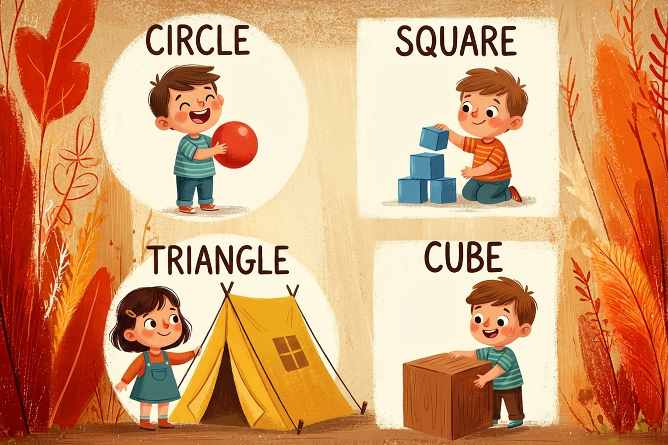 لمساعدة الطفل أو المتعلم على ترسيخ أسماء الأشكال بالإنجليزي وفهم Geometric shapes in English بشكل عملي، من الأفضل استخدام الجمل في سياقات حياتية مختلفة بدل التكرار المباشر.