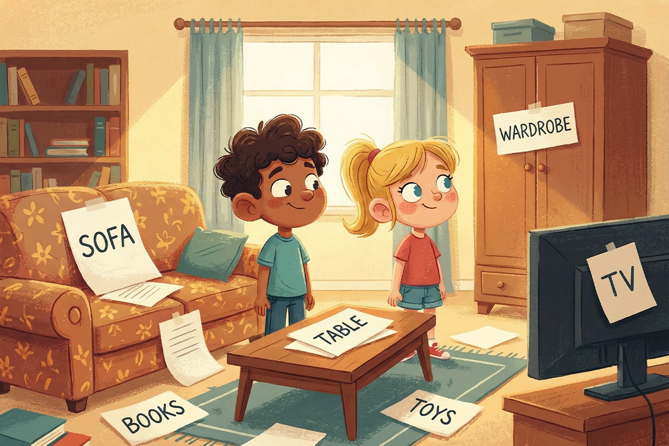 Označování běžných věcí v domácnosti anglickými názvy je jednoduchý, ale velmi účinný způsob, jak s ponořením do jazyka začít v domácích podmínkách. Když na nábytek, spotřebiče nebo kuchyňské vybavení umístíte štítky s anglickými slovy, propojujete slovní zásobu s konkrétními předměty. To pomáhá upevnit nová slovíčka v paměti a podporuje přirozené spojení mezi slovem a konkrétním objektem.