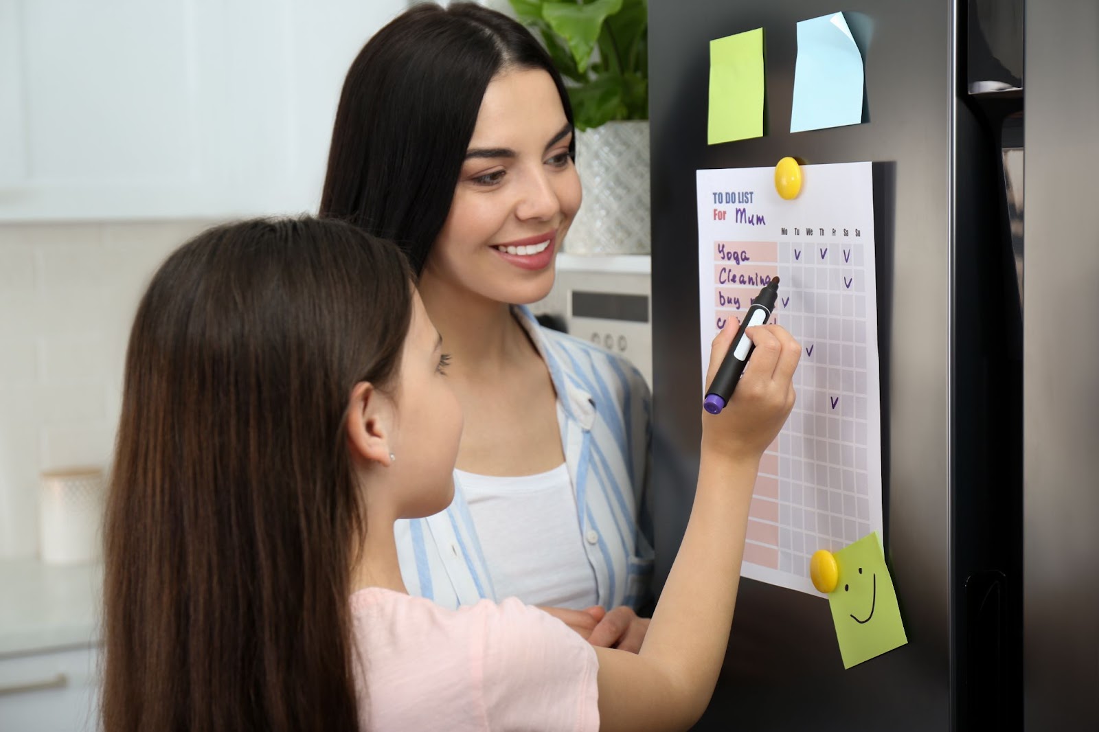 Napište si seznam věcí a úkolů, které je třeba udělat. Nechte dítě odškrtnout každý splněný úkon. Toto je významná součást time managementu, co s sebou přináší nejenom přehled o dokončených úkolech, ale i pocit satisfakce. Pomozte dětem naplánovat kontrolní seznam a nezapomeňte je za splnění naplánovaných aktivit pochválit a odměnit. Bude je to motivovat do budoucna.
