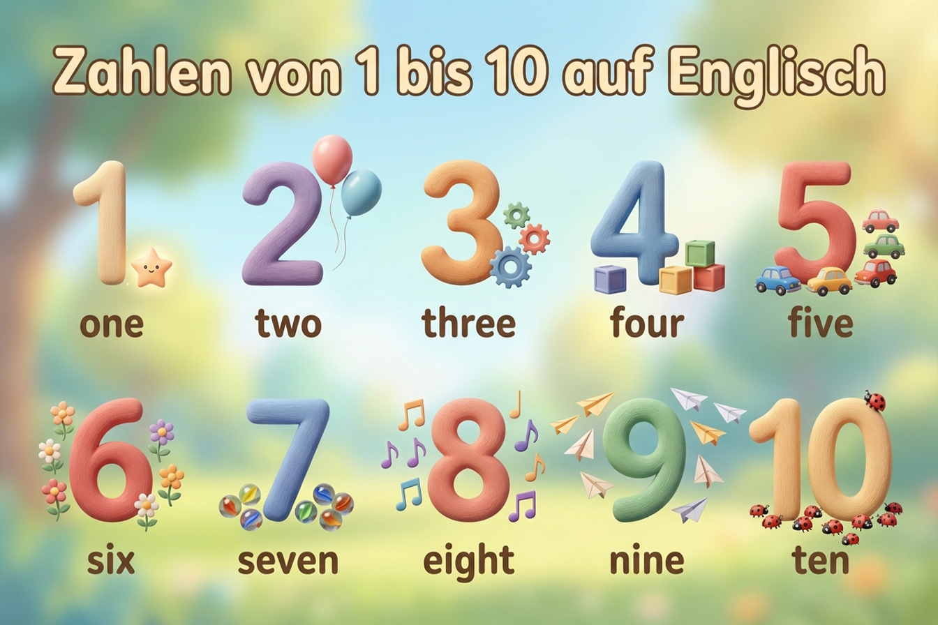 Die Zahlen von 1–10 auf Englisch gehören zu den ersten Grundlagen beim Englischlernen. Sie lassen sich leicht in den Alltag integrieren – etwa beim Spielen, beim Telefonieren, Treppensteigen oder Hausnummern ablesen.