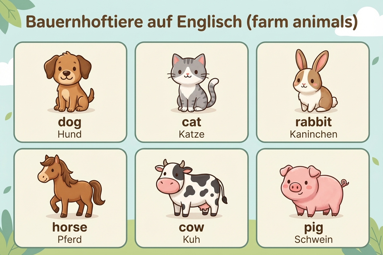 Wenn Kinder Tiere auf Englisch lernen, erweitern sie ihren Wortschatz spielerisch. Besonders vertraute Tiere wie Haustiere oder Bauernhoftiere helfen dabei, neue Wörter schnell zu verstehen und einzuordnen.