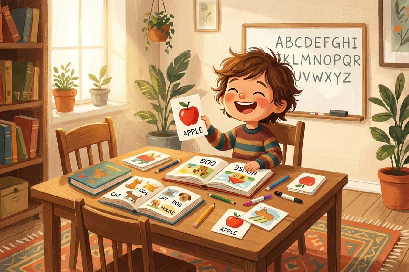 À la maison, il est possible d’améliorer toutes les compétences linguistiques (écouter, parler, lire et écrire) tout en s’amusant et en développant la confiance en soi. Un environnement familier aide à se sentir à l’aise et à pratiquer sans même y penser ! En intégrant quelques activités simples dans votre vie quotidienne, vous pouvez aider votre enfant à enrichir son vocabulaire, améliorer sa prononciation et rendre l’anglais concret et vivant.
