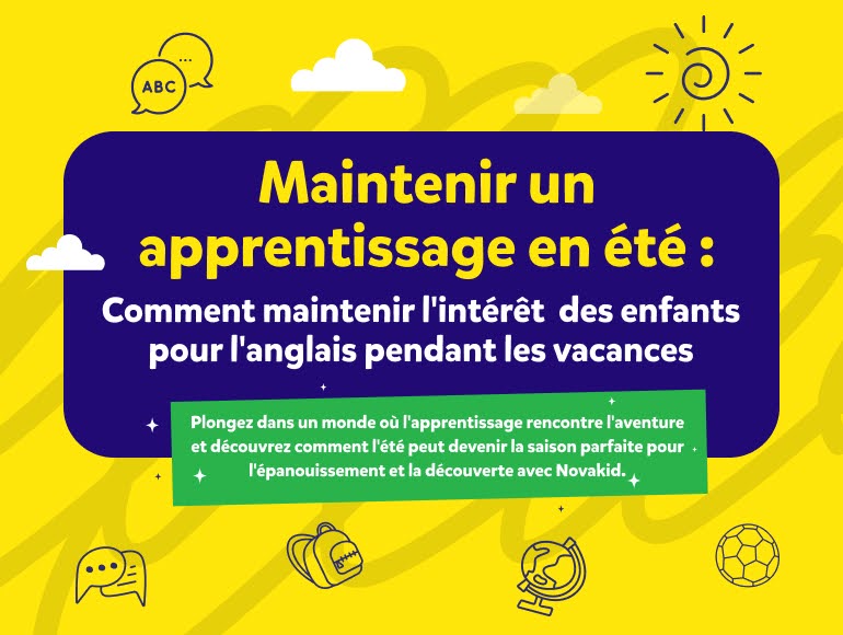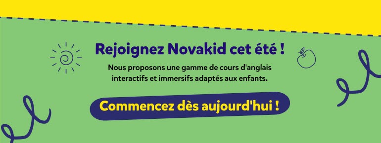 L’école d’anglais en ligne Novakid emploie dans ses cours des méthodes d’apprentissage modernes pour enseigner la langue aux jeunes étudiants, assurant ainsi une efficacité maximale. En nous appuyant sur les études linguistiques les plus récentes, nous savons qu’un apprentissage ludique et immersif stimule la motivation et améliore la mémorisation chez les enfants, notamment par le biais des jeux et des chansons.