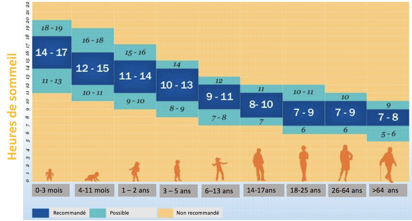 Recommandations du temps de sommeil de la NFS par tranches d’âge