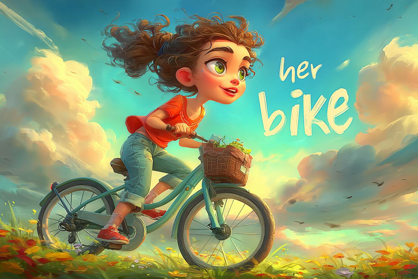 - Her bike : her montre que le vélo appartient à une femme ou une fille.