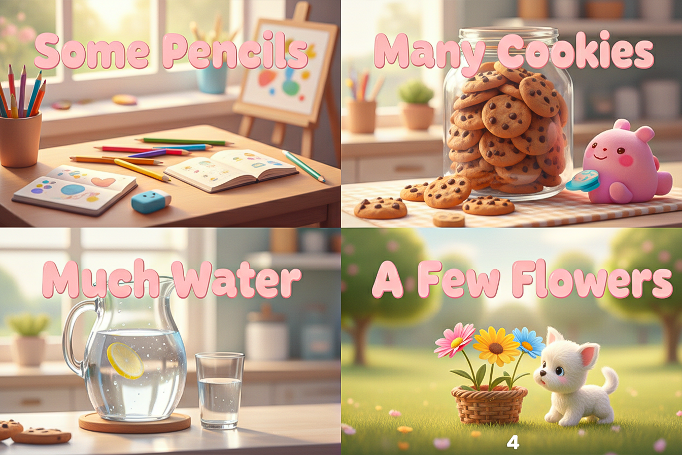 Une fois que votre enfant comprend la différence entre noms dénombrables et indénombrables, il peut apprendre à exprimer la quantité en anglais : « beaucoup », « un peu », « peu »…