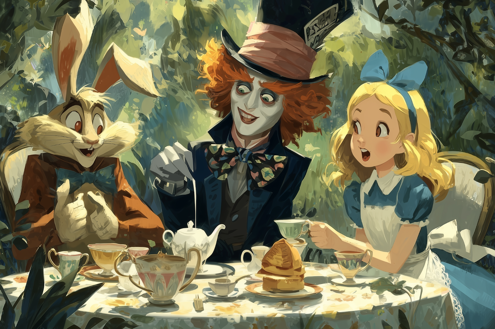 - מסיבת התה של הכובען המטורף – מטאפורה למצבים נטולי היגיון ורציונליות.