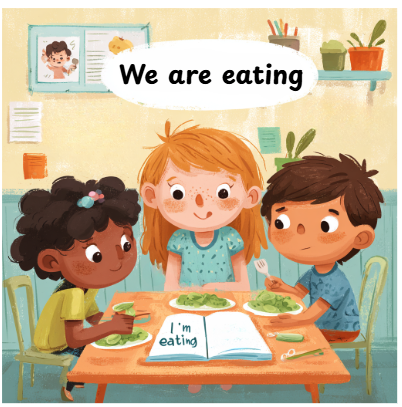 ✔️ She is reading a book now | היא קוראת ספר עכשיו. (הטיה של be בהתאם לנושא המשפט – במקרה זה is).