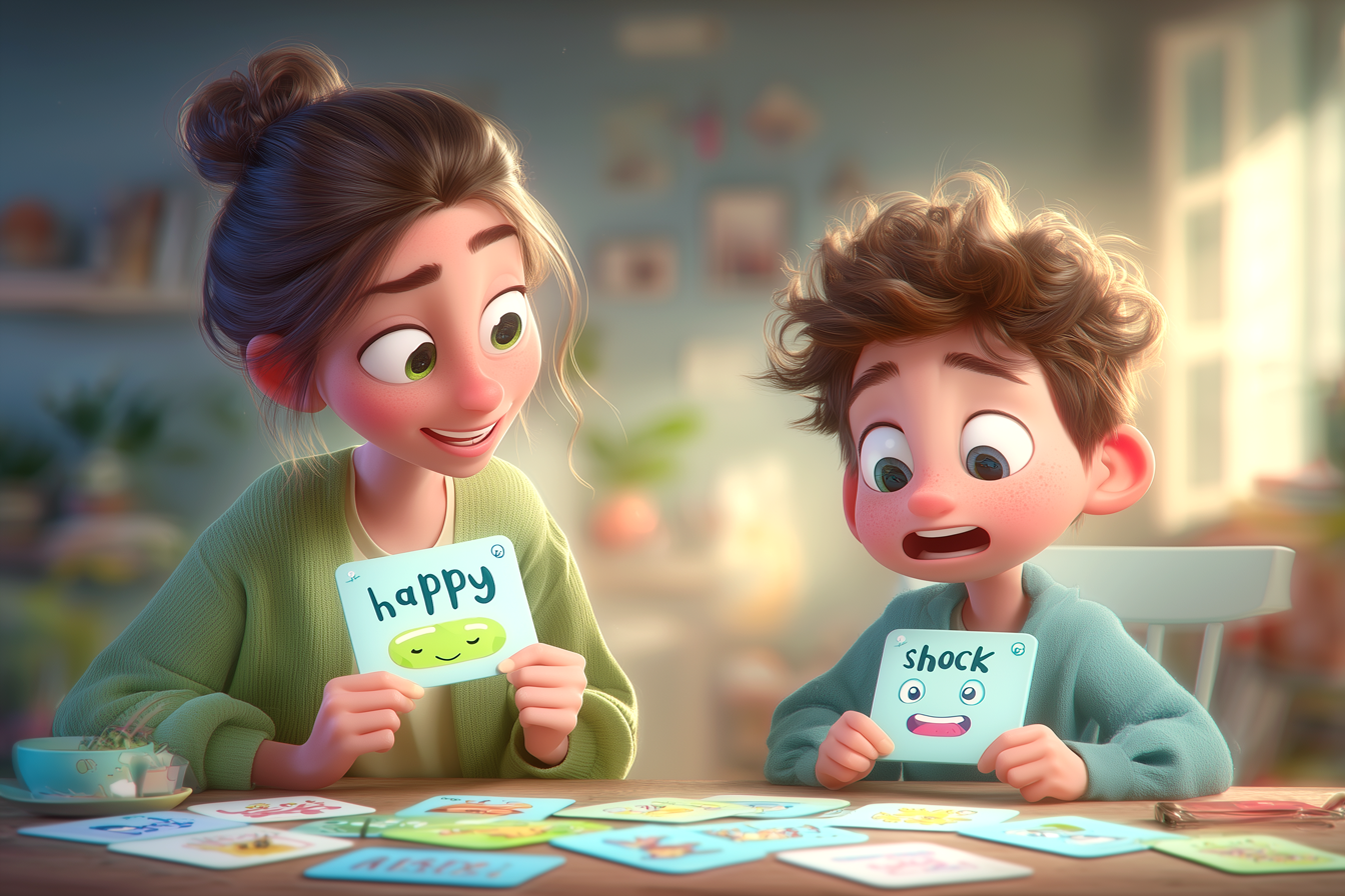 - משחקי דרמה – הילד מקבל מילה כמו angry או excited, ועליו לשחק סצנה קטנה שמציגה את הרגש.