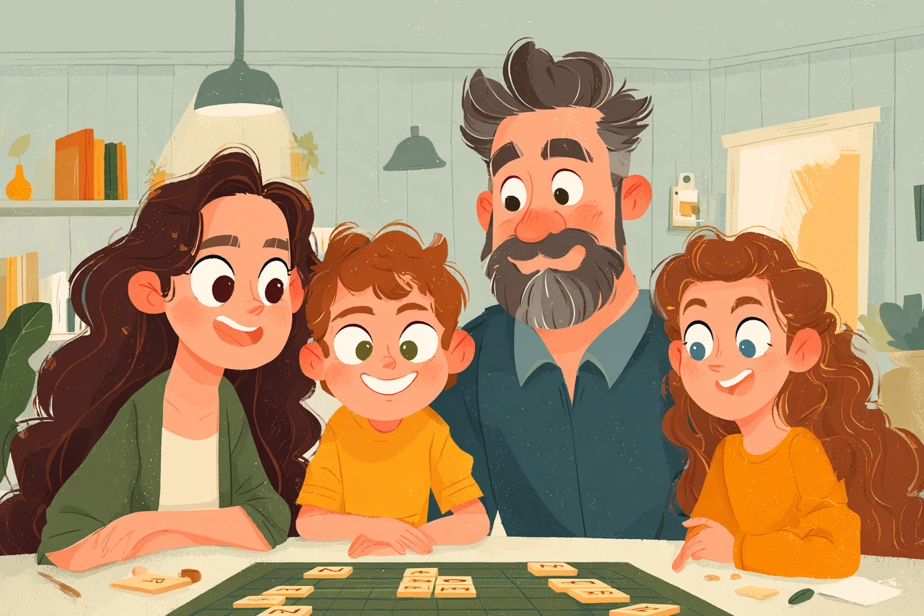 - משחקי מילים וקריאה – ישנם משחקים רבים של קריאה ומשחקי מילים, כמו למשל "Scrabble Junior", שמלמד כיצד לבנות מילים בצורה כיפית, הילדים לומדים מילים חדשות וגם לתקשר בצורה חדשה. במשחק "Headbanz" הם לומדים כיצד לנחש מילים ולחשוב מחוץ לקופסה, תרתי משמע.