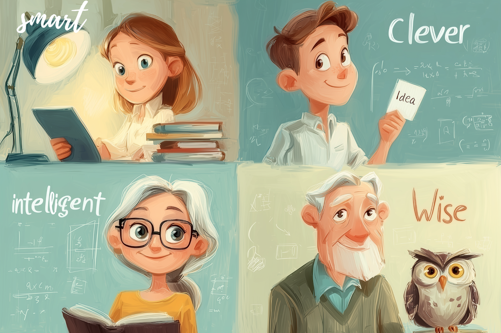 מה ההבדל בין Intelligent, Clever, Smart ו-Wise באנגלית?