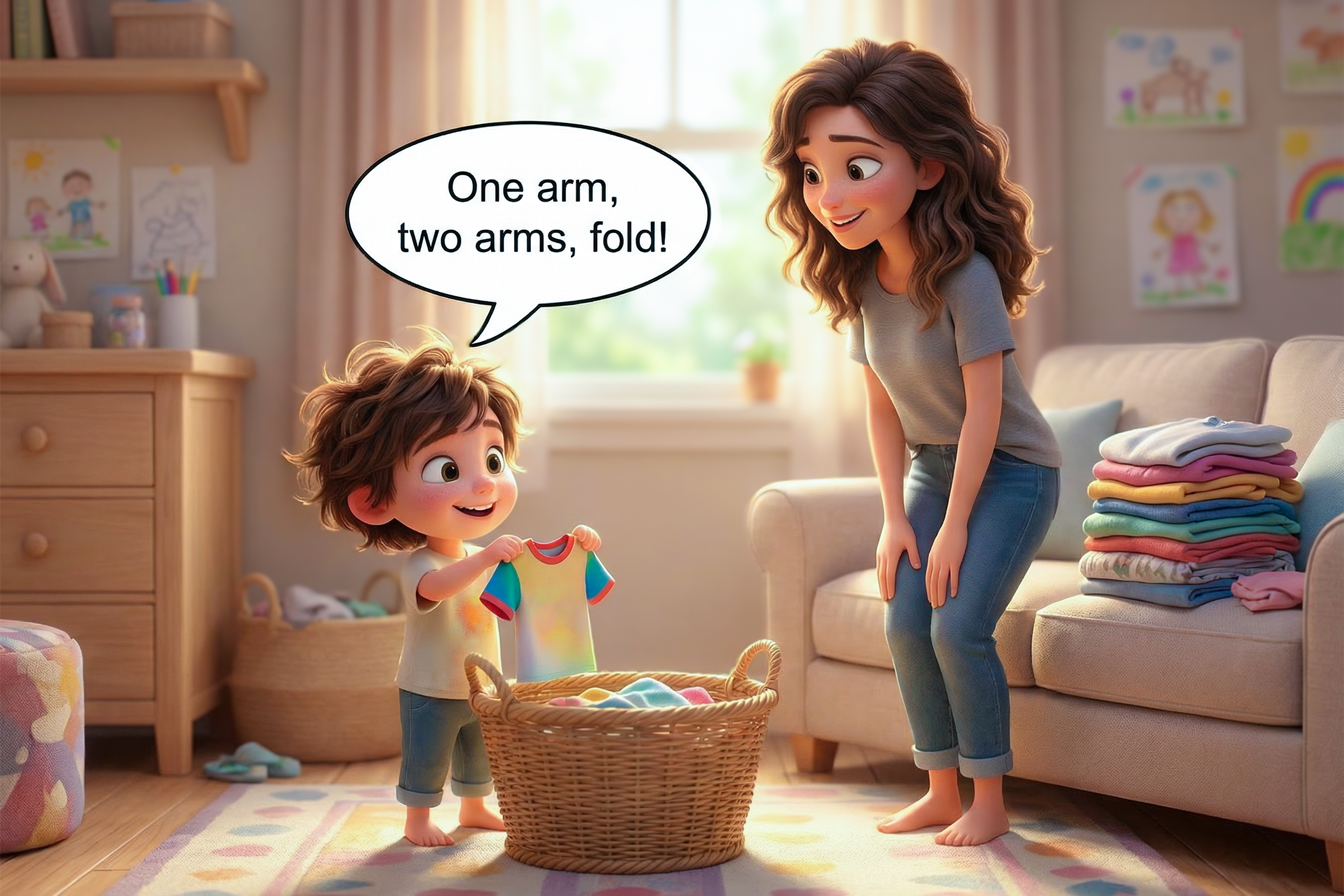 גם משימות פשוטות בבית יכולות להפוך להזדמנות שפתית. לסדר צעצועים. לקפל כביסה. לערוך שולחן.