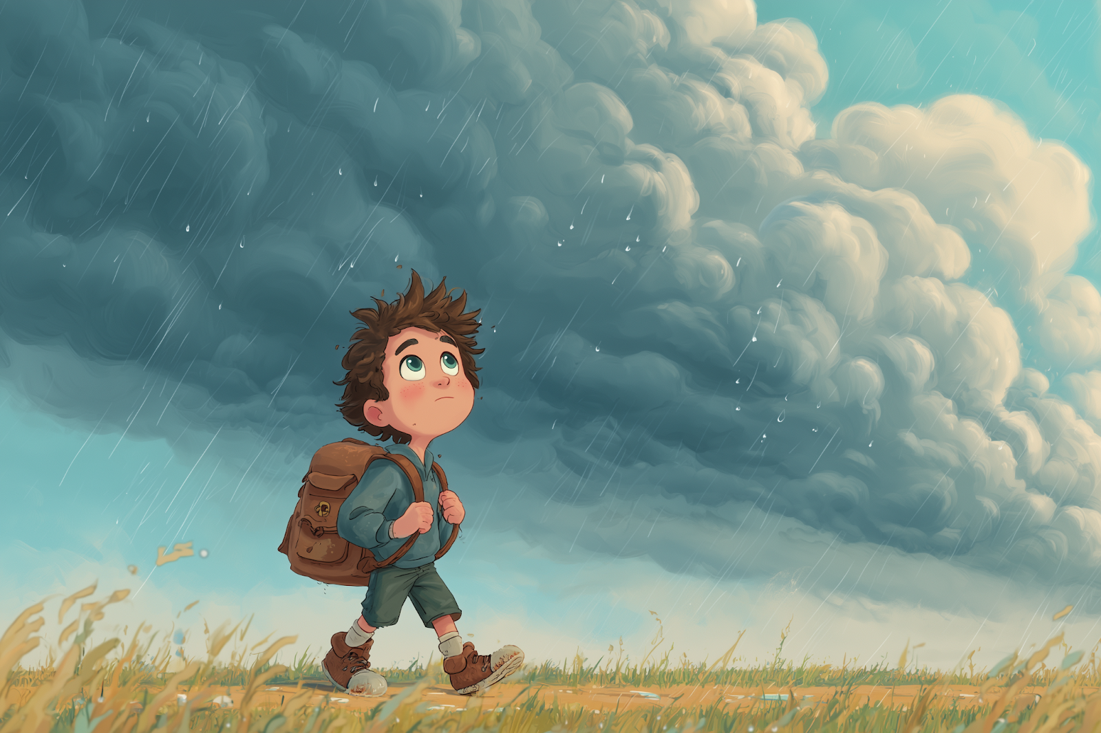 הולך לבית הספר, הרגשתי שהגשם מתחיל.