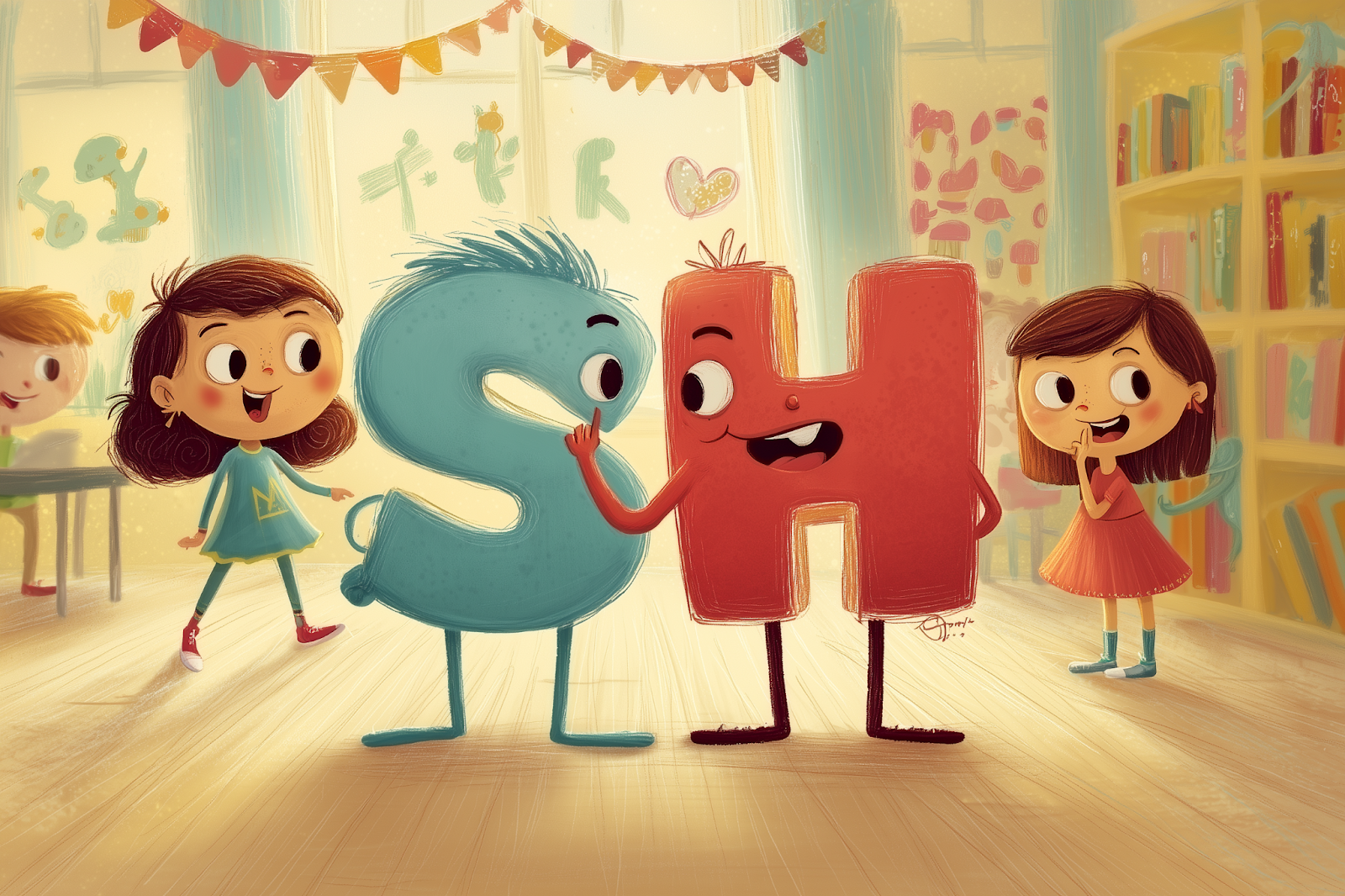 - S + H = שׁ (Sh): האות S עושה "ססס" והאות H עושה "ההה", אבל כשהן ביחד הן עושות "שׁשׁשׁ" (כמו כשמבקשים שקט).