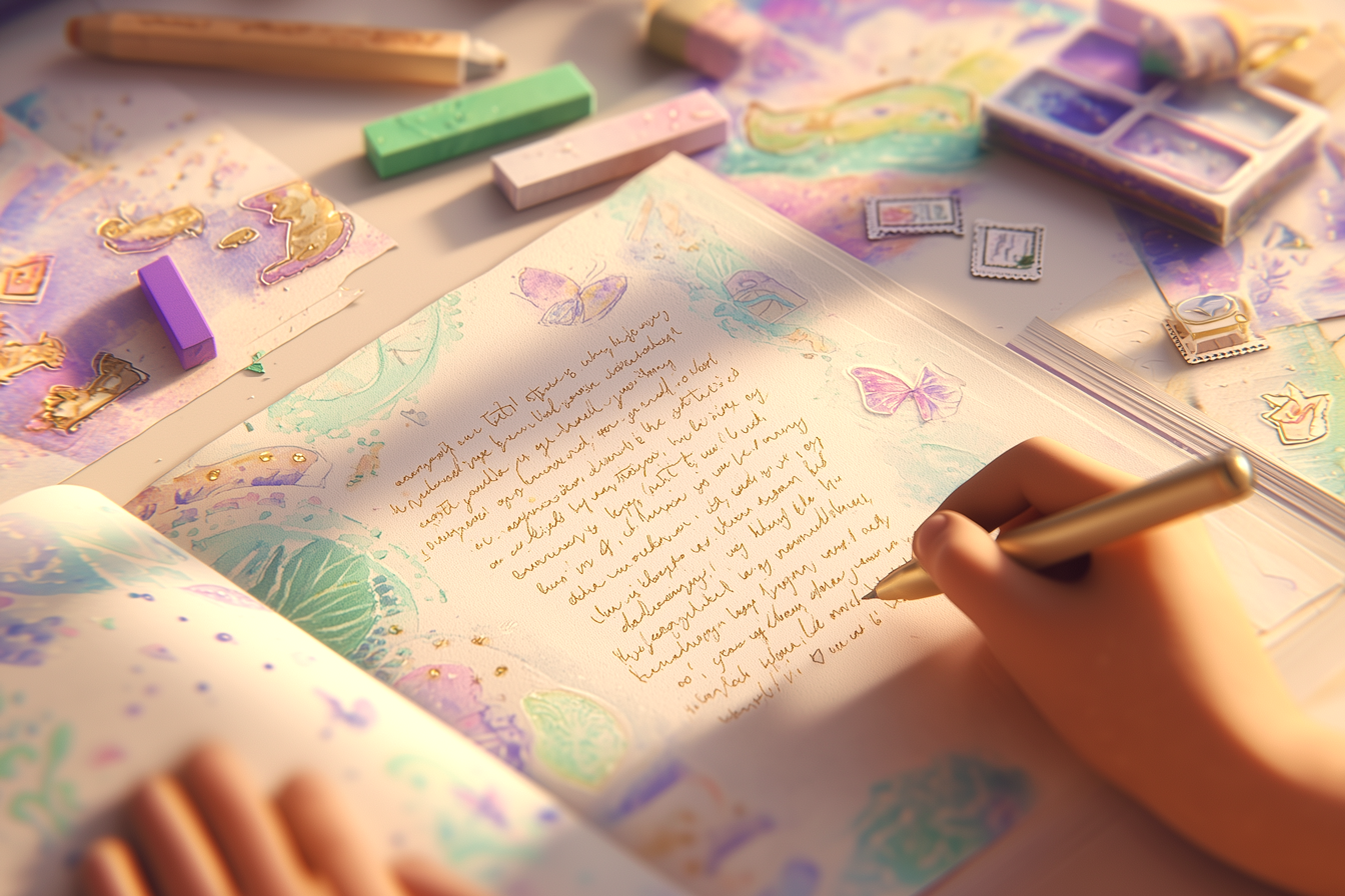 התחילו ממכתב קצר: “Dear Future Me”, “To my friend”, “Today I feel…”. הנושא פשוט, אישי — מאפשר לילד להתחבר.