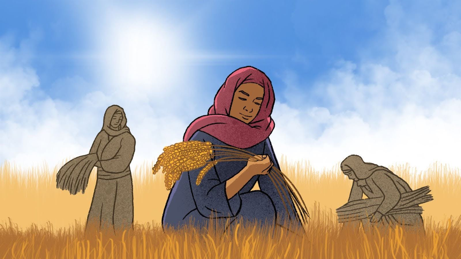 בהפגנת אומץ לב וענווה יוצאי דופן. היא לוקחת על עצמה ברצון את המשימה העמלה של ללקט בשדות כדי לפרנס את עצמה ואת נעמי, ומראה את נחישותה להתגבר על מכשולים באמצעות עבודה קשה והתמדה. הענווה והיושרה של רות הקנו לה את הכבוד וההערצה של בועז, בעל האדמות העשיר, שבסופו של דבר הופך לבעלה.