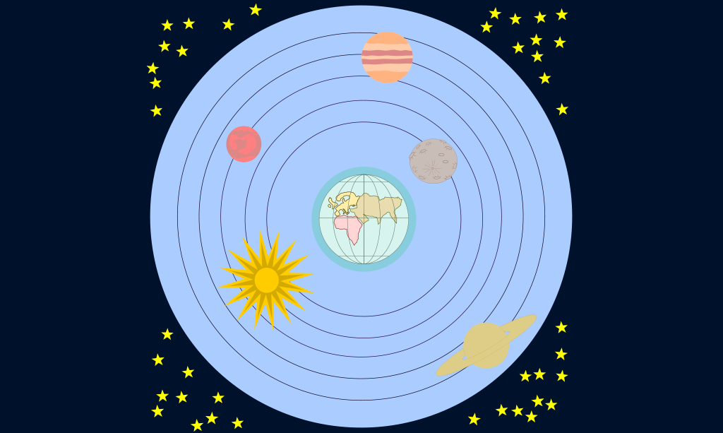 אז מה חשבו באותה תקופה? במשך אלפי שנים, רוב המדענים והפילוסופים האמינו שכדור הארץ הוא מרכז היקום ושהכוכבים והשמש סובבים סביבו. השקפה זו נקראה המודל הפטולמאאי, על שמו של המדען תלמי, שהמציא את התיאוריה הזו.