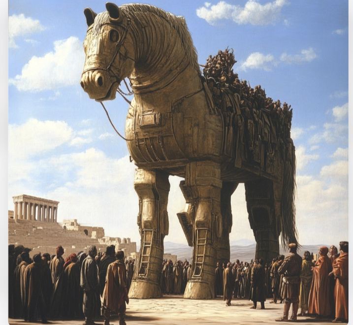 - סוס טרויאני: אלוזיה לתכסיס של היוונים במלחמת טרויה – הם הכניסו סוס עץ והביאו לוחמים בתוכו. ההסוואה המתוחכמת הזו אפשרה להם לכבוש את טרויה.