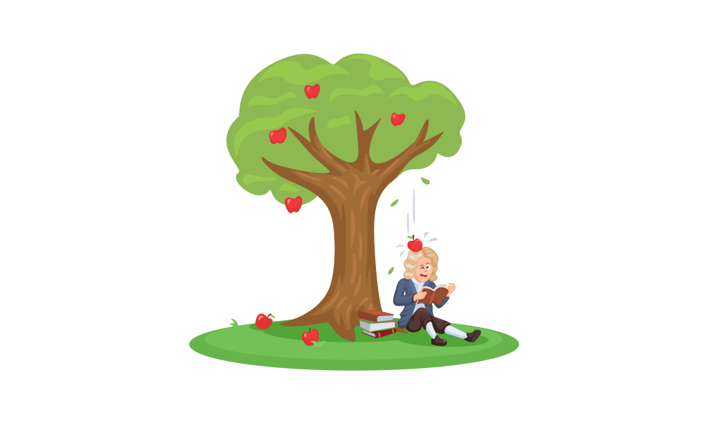 אחת התגליות המפורסמות ביותר שלו היא כוח הכבידה. האגדה מספרת על כך שתגליותיו בנושא החלו כשהתבונן בתפוח שנפל מעץ, אבל למעשה, זה היה תהליך של מחשבה עמוקה ותצפיות מדויקות.