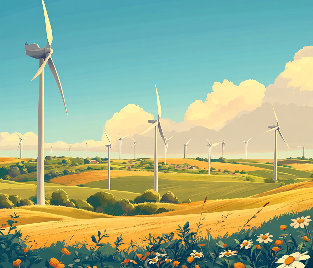 • 🌬️Con il vento: quando il vento soffia, fa girare le pale delle turbine. Le pale che girano sono collegate a un generatore che produce elettricità. Questa energia si chiama energia eolica (Eolo era il dio del vento nella mitologia greca).