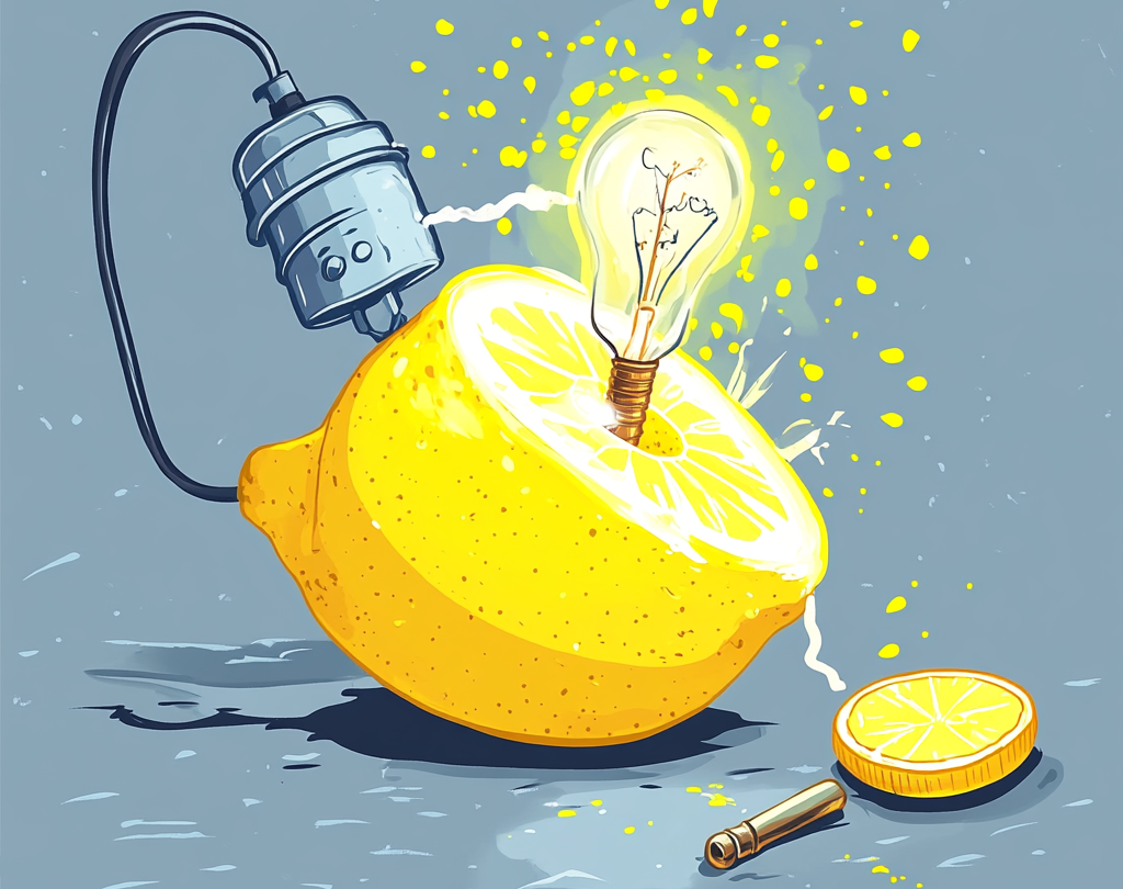 2. 🍋 Batteria al limone: infila una moneta di rame e un chiodo zincato in un limone e collegali fra loro e a una piccola lampadina. Il succo di limone agisce come una batteria liquida e crea una piccola corrente elettrica che fa accendere la lampadina. I bambini imparano come l’elettricità può essere generata da una reazione chimica semplice e vedere come si crea un circuito.