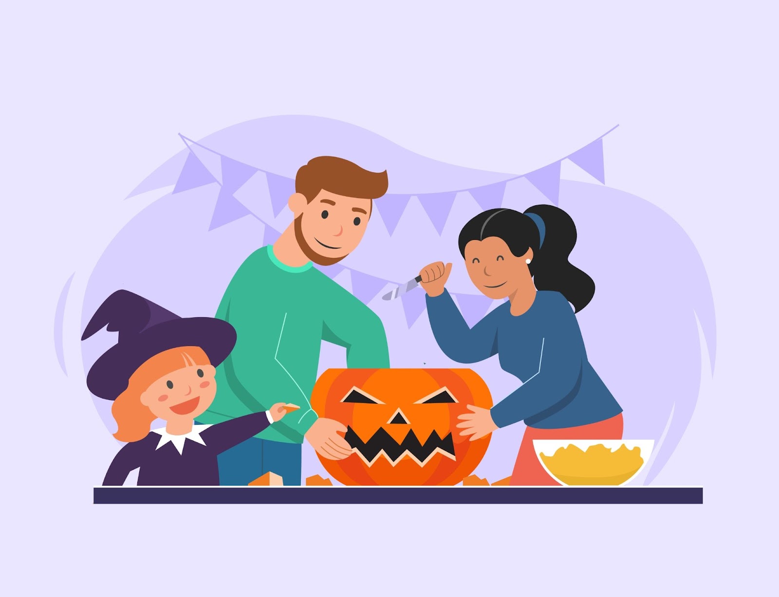 Decorare la zucca di Halloween insieme a bambini e bambine è divertente. Ma in realtà il grosso del lavoro dovrai farlo tu. Dovrai usare coltelli affilati e svuotare la zucca non è una cosa facile da fare per i piccoli.