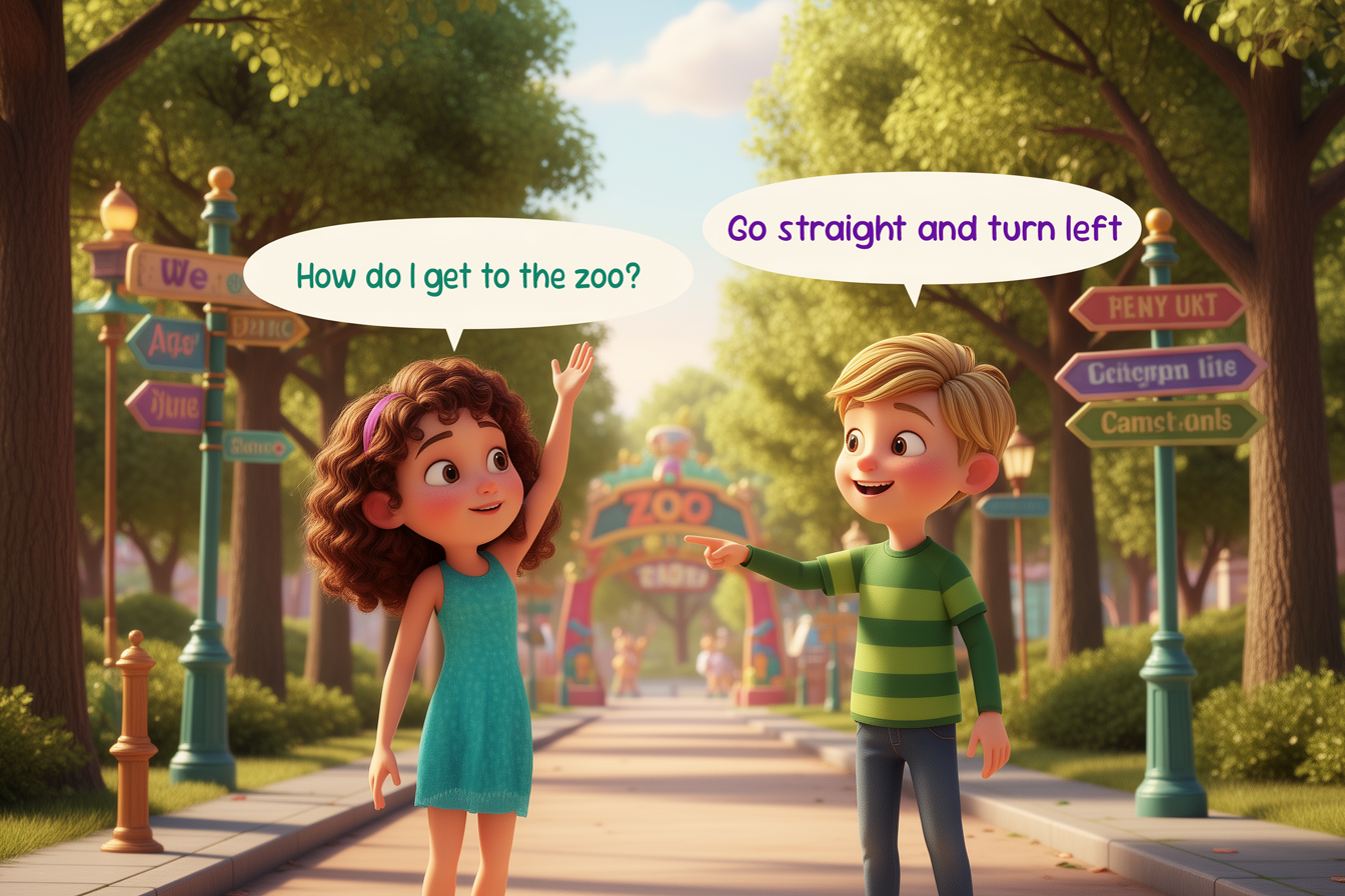 - Imparare a chiedere e dare indicazioni in inglese aiuta i bambini a orientarsi, viaggiare e comunicare con sicurezza.