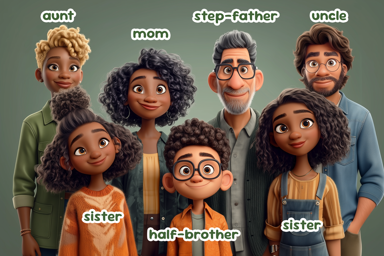 💎 Oggi il mondo non è più come un tempo, e le famiglie possono essere molto diverse tra loro. Magari la mamma ha avuto un bambino da un uomo diverso dal papà dei primi figli, oppure papà si è risposato. In inglese esistono termini specifici per descrivere questi legami, ed è importante spiegarli bene ai bambini. Vediamoli: