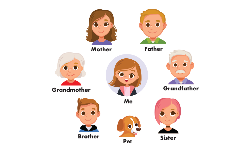Questa è la lista completa dei membri della famiglia in inlgese. Un gioco divertente, se stai aiutando i tuoi bambini a imparare l’inglese, è quello di disegnare insieme l’albero genealogico della famiglia in inlgese.