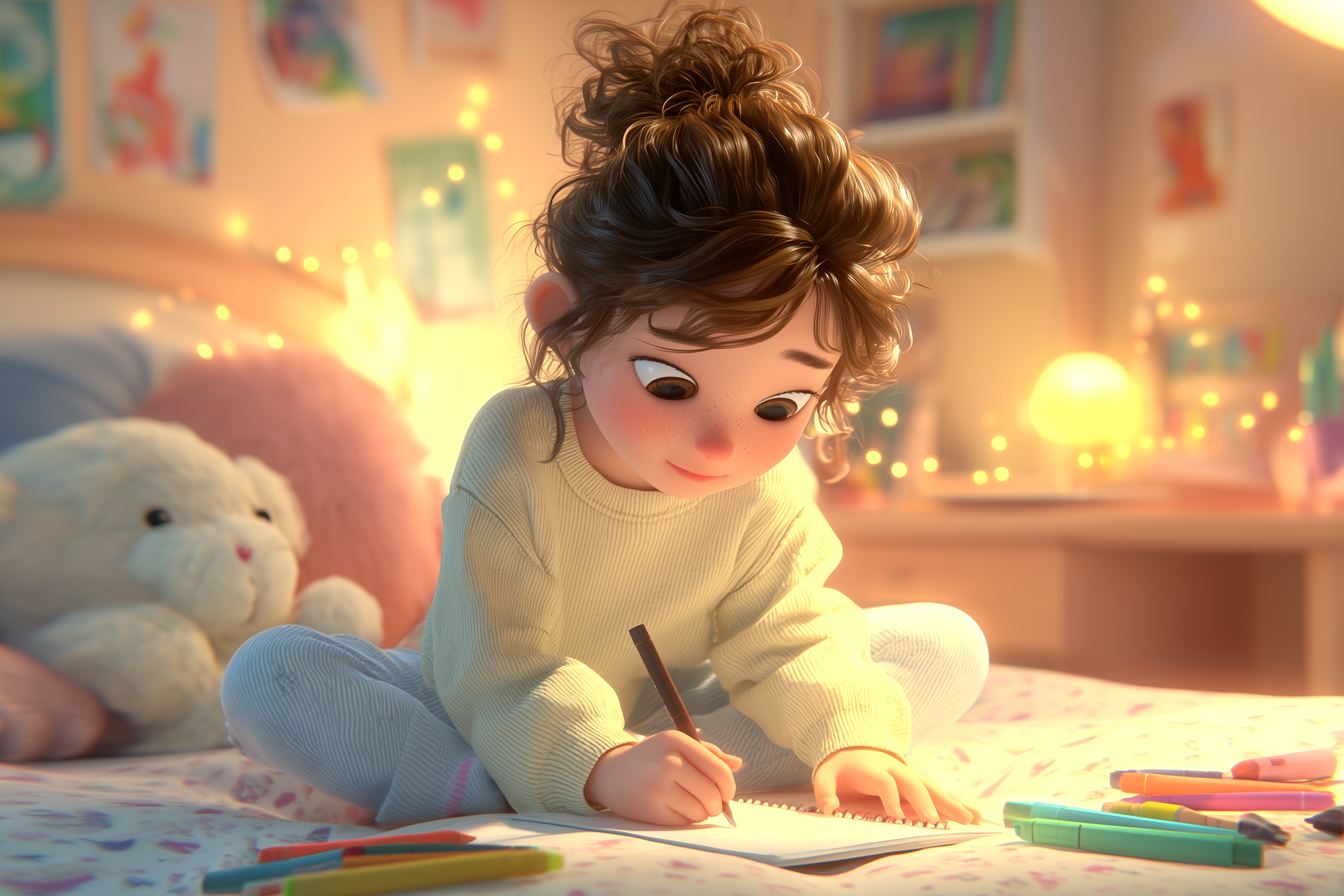 Un altro esercizio molto utile per i bambini e le bambine è scrivere delle semplici frasi per descrivere la propria giornata:
