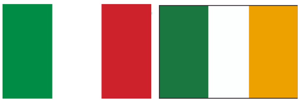 Come vedi, le due bandiere si differenziano per l’ultimo colore a destra, che per l’Italia è rosso e per l’Irlanda è arancione. Entrambe le bandiere però, vengono collegate all’asta dal lato verde.