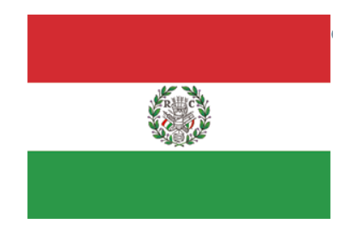 Come vedi in questa fase le bande erano orizzontali e nel campo bianco c’erano le lettere RC (repubblica cispadana).