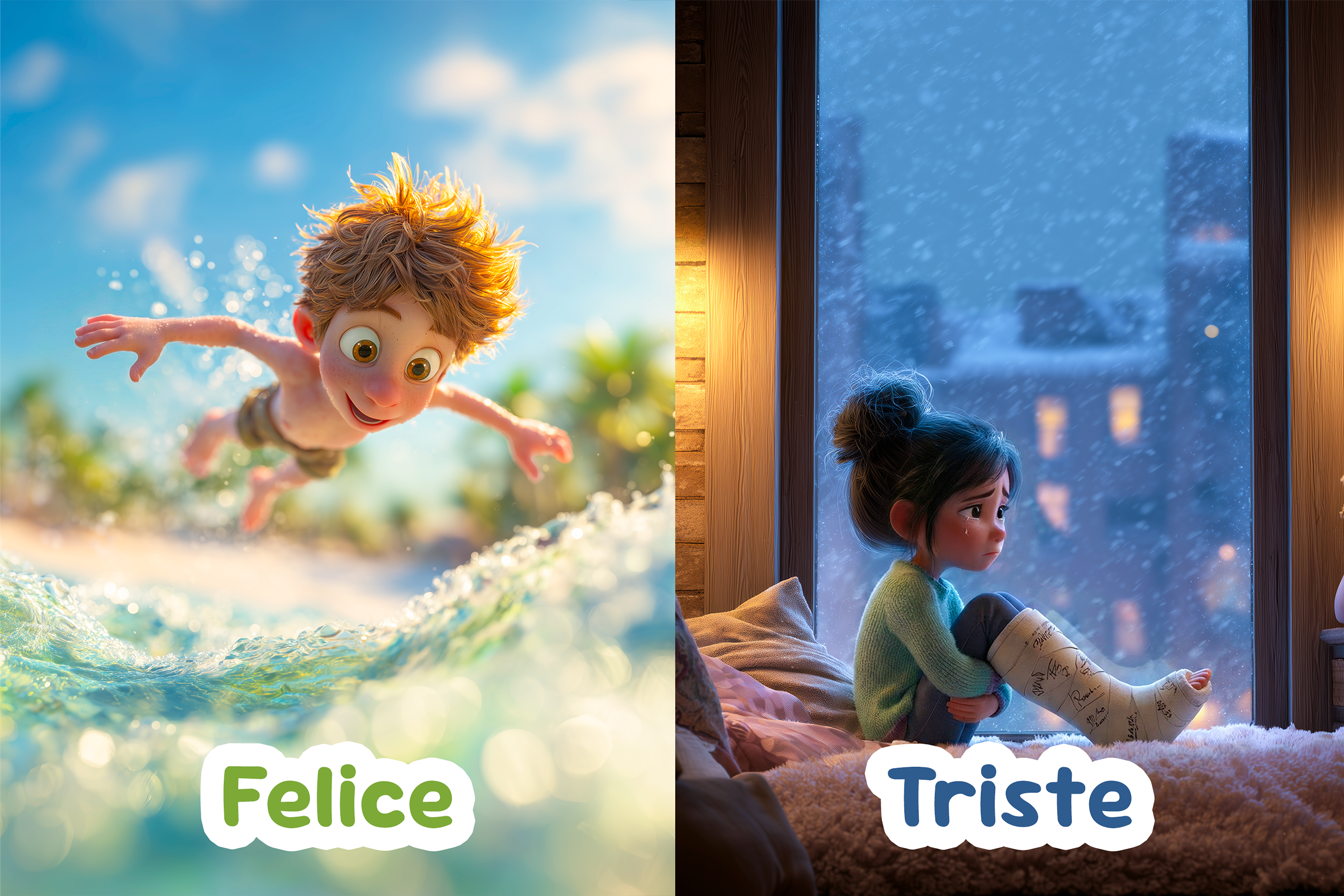 💡Idea: alcuni contrari si formano aggiungendo un prefisso, come in– (felice → infelice) o s- (fortunato → sfortunato). Questa “composizione delle parole” può essere un esercizio utile da fare con i bambini per ampliare il loro vocabolario. Pensa a parole come comodo, previsto ecc.
