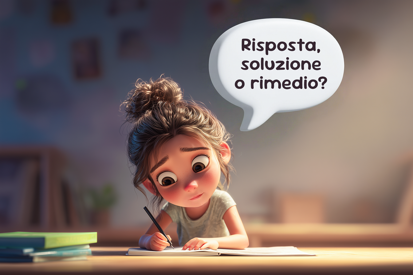 🌿Sinonimi: risposta, risultato, rimedio, via d’uscita, chiave.
