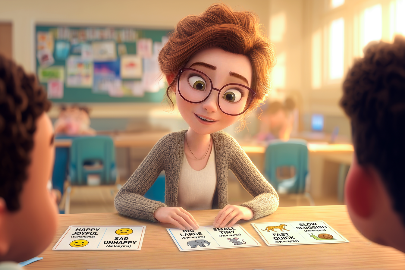 A scuola, sinonimi e contrari compaiono spesso nelle schede di italiano: nelle attività di comprensione del testo, nei temi, negli esercizi di lessico. Gli alunni imparano a riconoscere parole con significato simile o opposto, a completare frasi, a sostituire termini ripetuti.