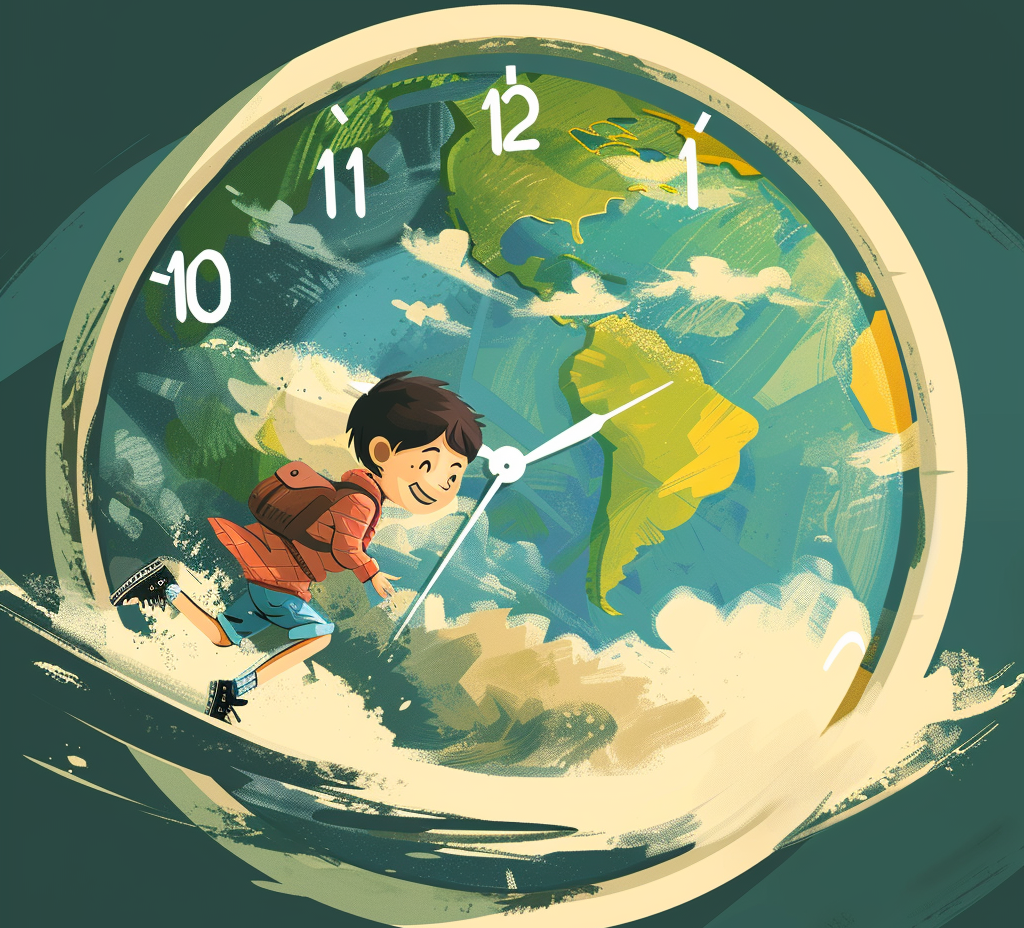 Per accompagnare un bambino nel fantastico mondo del fuso orario mondiale, del jet lag e dell’ora legale, per spiegare perché a Roma si pranza mentre a New York si fa colazione, meglio procedere passo passo, dalle basi ?.