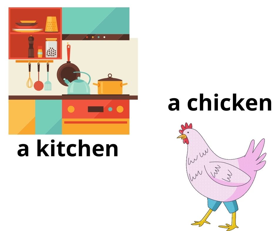 Attenzione alla kitchen: i bambini – e non solo – tendono spesso a confondere le parole kitchen e chicken. L’errore è comprensibile, perché queste due parole sono composte da lettere e suoni simili. Provate a ripetere a mo’ di scioglilingua la frase “there is a chicken in the kitchen”, il primo che la ripete tre volte senza sbagliare vince!