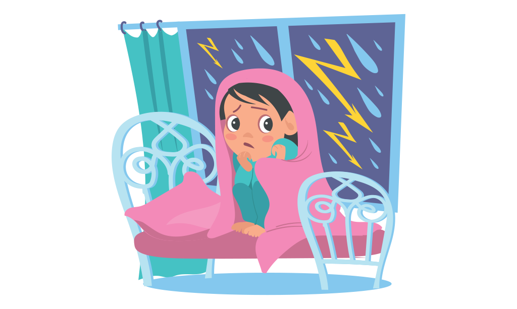 • Paura del temporale: è una paura più tipica dei bambini piccoli e ha a che fare spesso con il rumore improvviso dei tuoni. La paura dei rumori forti è infatti un’altra paura tipica dei bambini.