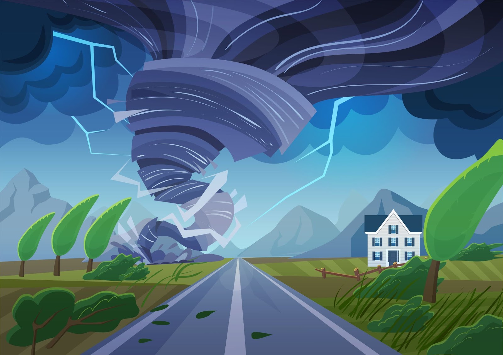 I tornado possono essere molto pericolosi perché possono sollevare oggetti pesanti, abbattere alberi e danneggiare le case, come vediamo sotto.
