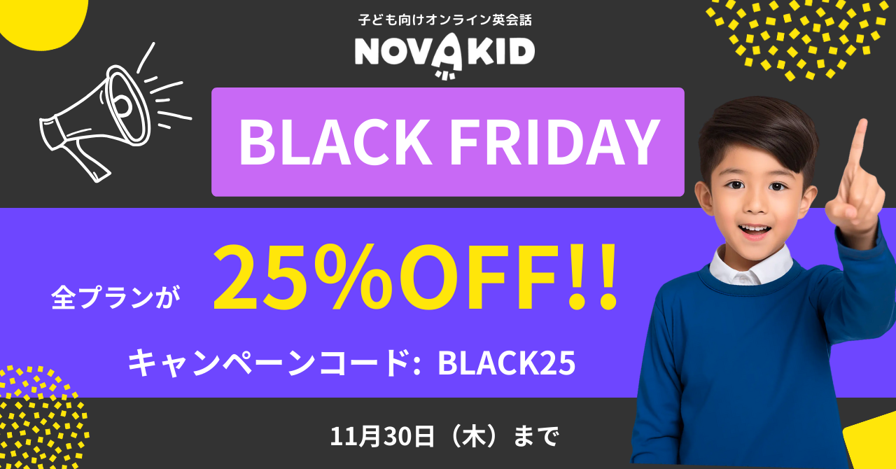 子ども向けオンライン英会話ノバキッドでは、お得に英語を学べる年に一度のブラックフライデーキャンペーンを開催します。