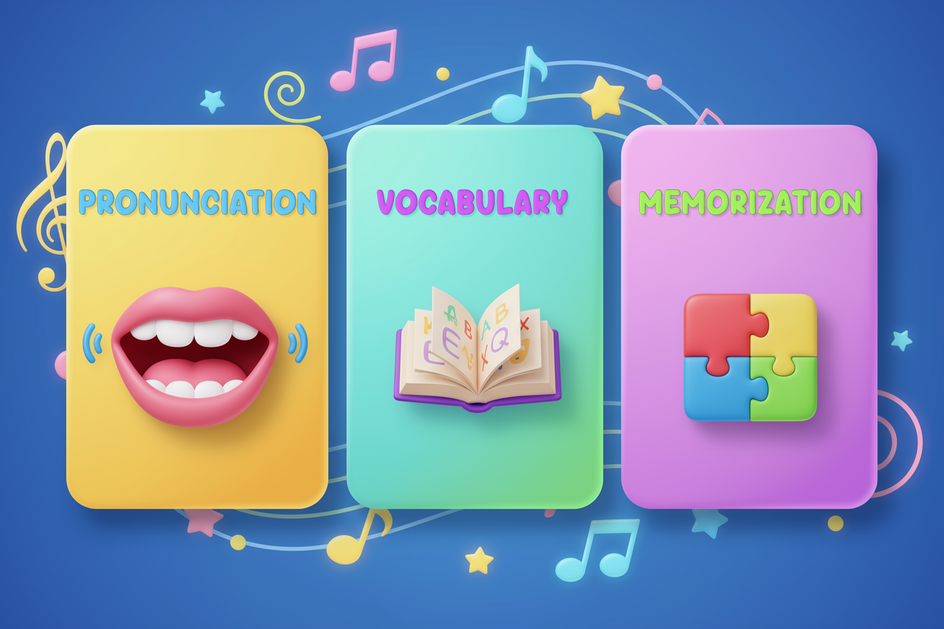 - 発音がよくなる …歌いながら正しいイントネーションを身につけられる