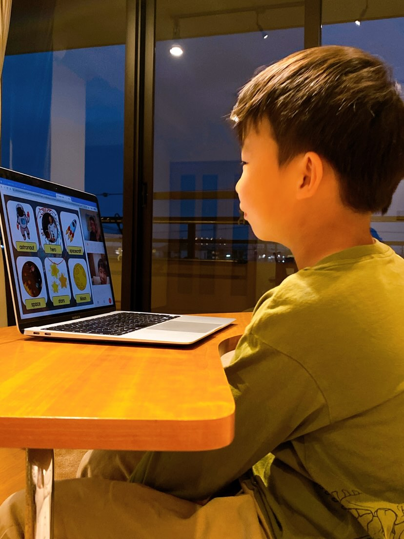 子供たちは、英語絵本やアニメ、オンライン英会話の先生との会話で単語やフレーズを吸収し、それがどういう場合にどんな風に使われているのかを感覚的に捉えて吸収しています。