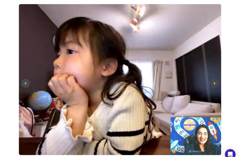 ノバキッドのレッスンでは、おうち英語ではできなかった、先生の説明や英語のゲームを通じて、より鮮明に英語を理解できるようになりました。例えば、「this」と「these」や「these」と「those」の違いです。さらに、テキストに沿ったレッスン前のウォーミングアップの動画、レッスン後の宿題、レッスン中には、前回の復習も含めたレッスンのおかげで、漏れなく着実に身になっているなあと実感しています。ノバキッドのレッスンを受講し始めて現在約1ヶ月弱ですが、これからも娘の英語力の成長が楽しみです。