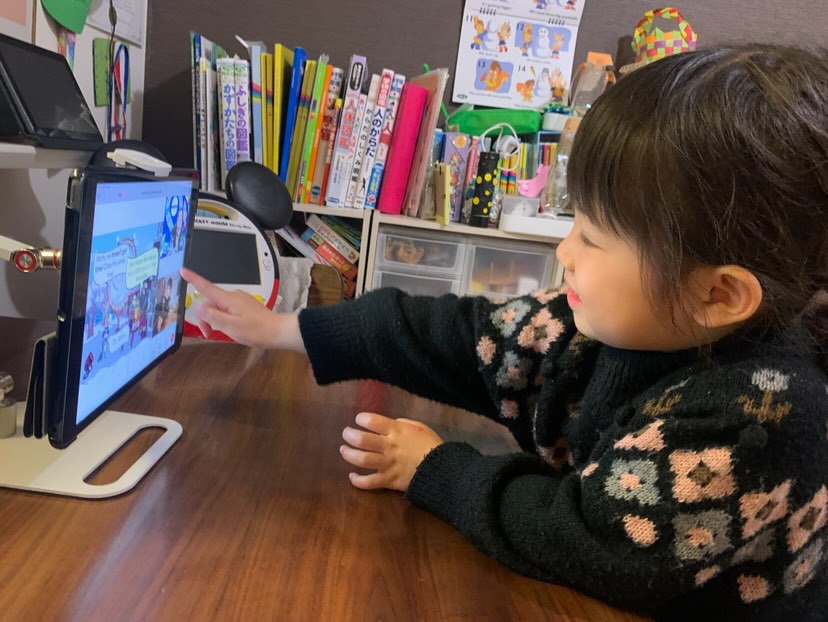 2歳くらいまではかけ流しや絵本のみのインプット中心の生活で、アウトプットは日本語のみでした。2歳が過ぎた頃から少しずつ英語のアウトプットがではじめ、時々親子で公園やお家でアウトプットをしてきました。幼稚園に行くようになり、家での英語アウトプットは減りましたが、英語が話せるお友達と遊んだ時やオンライン英会話ではオールイングリッシュです。