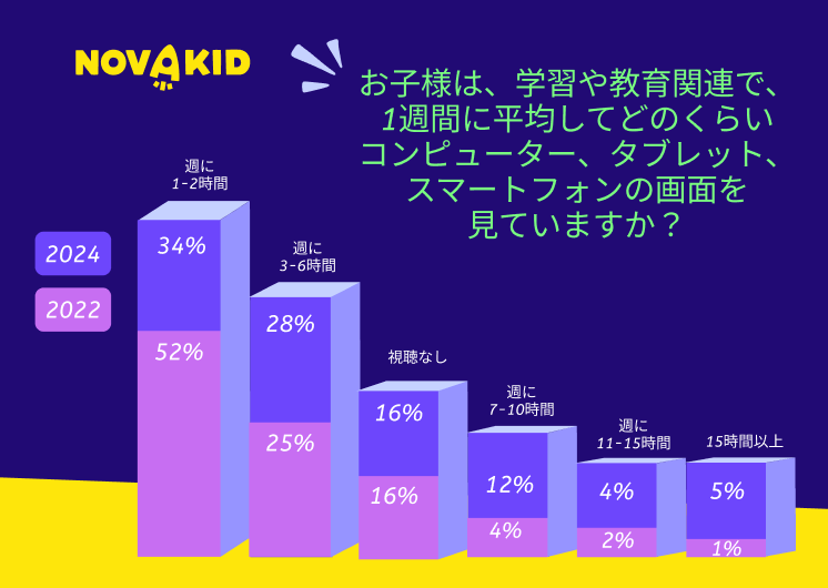 子ども向けオンライン英会話ノバキッドは、4〜12歳のお子様を持つ保護者200人を対象に、「スクリーンタイムの意識調査」を実施しました。