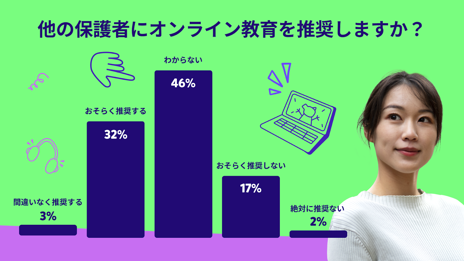 約4割の保護者が、他の保護者にオンライン教育を推奨すると回答