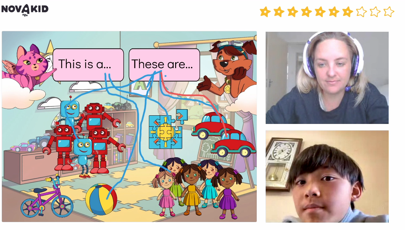 お母様は「ノバキッドでの英語学習は週に1回の25分間のレッスンなので、苦にならず楽しく受講できています。はじめのレッスンは緊張していたようですが、先生のジョークを交えた楽しい会話とゲーム形式のレッスンでうまく授業を進めてくださって、今では楽しんで継続して受講できています。」と、ノバキッドで英語学習を継続できる秘訣も教えてしてくれました。