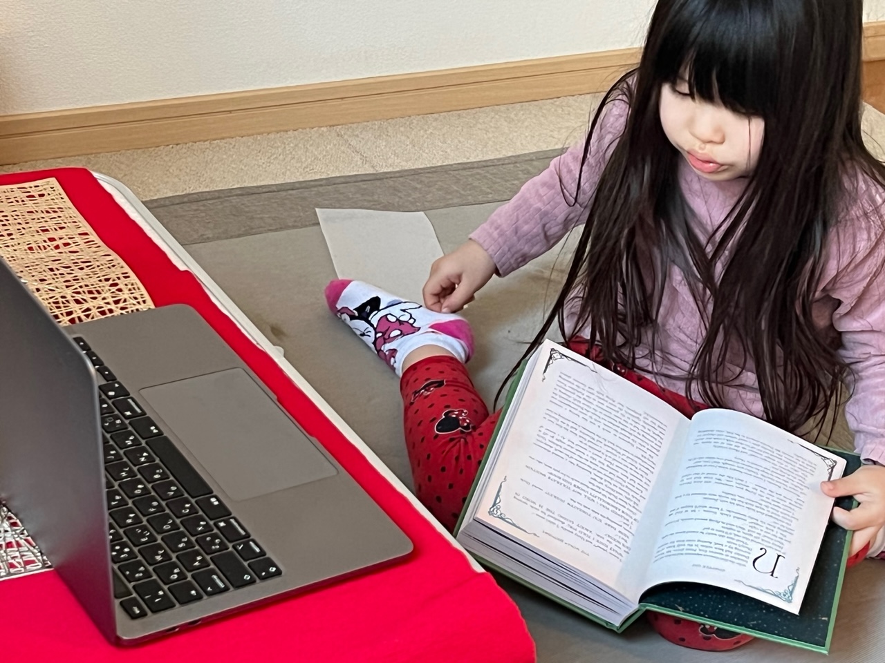 「物語の世界に入り込んで、登場人物と同じ気分を味わいその世界に溶け込むのが楽しい」と読書の楽しさについて話すえりなちゃん。ちなみに現在は「ハリー・ポッター」の原作、第2巻を読んでいるとのこと。日本語版を読まずに先にオリジナルの英語を読むえりなちゃん。まだ小学校1年生なので漢字が多い日本語版よりも英語版を読む方が早く読めてスムーズに内容が頭に入るそうです。ハリーが好きなのは彼がとても「勇気がある(brave)」からでハリーの友達になったような気持ちになるの、と目を輝かせながら話してくれました。ちなみに自分がもし魔法を使えるなら、散らかった部屋を片付ける魔法を身につけたいそうです!