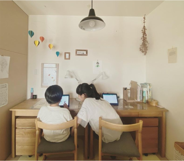 子供が机に向かっている姿はもちろん、リビングやキッチンで宿題をする姿、工作をしたり絵を描いたり、